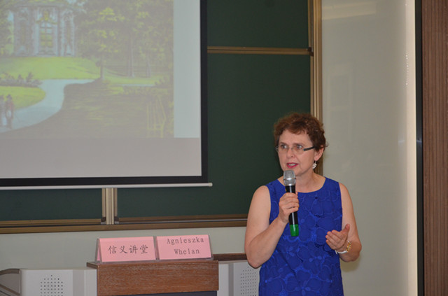 2016年5月25日下午,由美国弗吉尼亚州old Domninion大学Agnieszka Whelan教授主讲的“The Chinese garden in the West: the mask or reality?”讲座在金沙赌场 学术交流中心融会厅成功举行。此次讲座为金沙赌场 信义讲堂第四十讲,由袁静老师主持,加拿大瑞尔森大学廖再毅教授师生18人和金沙赌场 相关专业一百余名师生参与讲座。